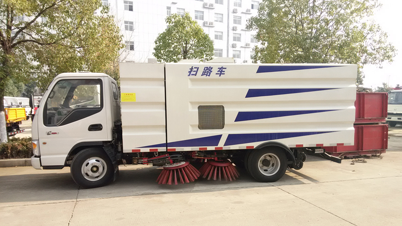 主要適用范圍:適用于小區(qū)道路、廣場、人行道的清掃。 清掃方式:四掃盤與吸盤進行吸掃結合,吸掃能力卓越;兩側掃把可同時工作,也可單側獨立工作。清掃裝置機構簡潔可靠,帶避讓防撞功能。 工作原理:副發(fā)動機啟動通過皮帶帶動風機轉動排空垃圾箱內的空氣,利用內外的壓強差將垃圾、灰塵、等雜物吸進垃圾箱。 清掃能力:清掃作業(yè)寬度約2.8-3.2m,吸入粒度φ110mm,清掃速度每小時5-25 km,清掃時可噴霧狀水,全面杜絕二次環(huán)境污染。 底盤部分:采用江淮底盤,3360軸距,發(fā)動機為江淮HFC4DF1-2D2,86kw(117馬力),808款駕駛室、氣制動,動轉,電熄火、暖風、電預熱、感載比例閥、離合助力、ABS。 上裝部分:帶掃盤4把,江鈴副發(fā)動機(77馬力),三洋馬達,施耐德控件開關,海普瑞斯電磁閥組,無級變速自動離合器,免維護式離心風機,不銹鋼垃圾箱4m3水箱1.5m3,尾部LED箭頭燈,手動泵應急系統(tǒng)。 可選配置:前沖、后灑、噴霧、自潔卷盤、作業(yè)監(jiān)控系統(tǒng)、輔助吸管裝置、推雪鏟等。