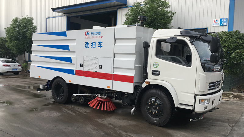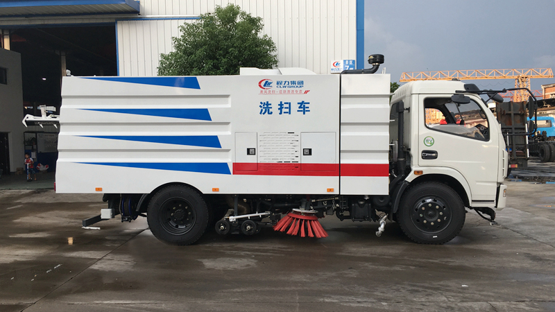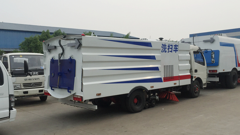 - 底盤發(fā)動機驅(qū)動洗掃車向前行走,掃至吸嘴前方的垃圾不斷進入到吸嘴中,并源源不斷地被吸到垃圾箱中,實現(xiàn)路面清掃。