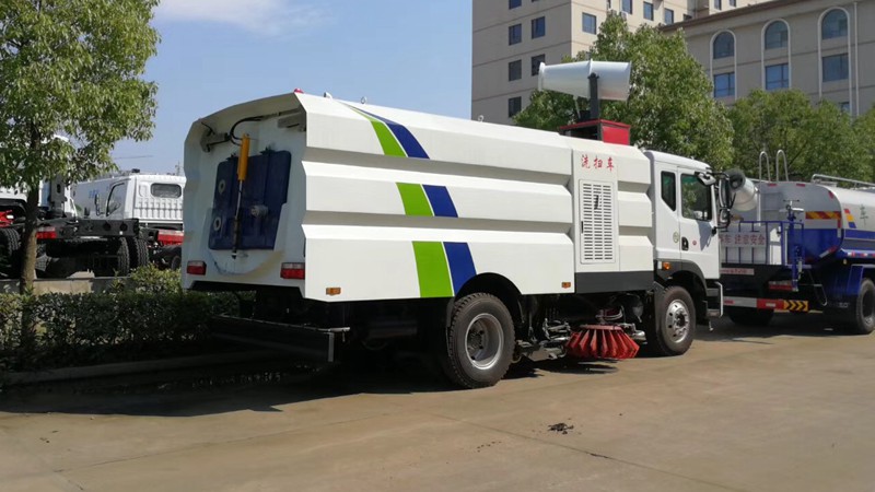 上裝配置: 1、帶2個(gè)中置掃盤;中置超寬吸嘴;雙層吸塵筒;康明斯170馬力副發(fā)動(dòng)機(jī);臺(tái)灣液壓閥;大力馬達(dá);德國高壓水泵(前沖/側(cè)噴/中噴/后噴霧)/側(cè)沖洗水槍/垃圾箱自潔裝置);萬向高壓路沿清洗;威龍低壓泵(前沖),氣動(dòng)球閥控制;4mm不銹鋼垃圾箱;不銹鋼水箱;德國控制器;尾部箭頭燈;機(jī)油、垃圾箱、水箱均帶防溢或低位報(bào)警裝置;倒車及洗掃狀態(tài)室內(nèi)監(jiān)視器;多種語音提示;倒車自動(dòng)保護(hù)、防傾倒垃圾翻車保護(hù)、檢修安全保護(hù);20m高壓沖洗卷盤;刷臂轉(zhuǎn)動(dòng)機(jī)構(gòu)使用德國進(jìn)口高新耐磨工程隔套,免打黃油;精密冷彎無縫液壓油管;運(yùn)動(dòng)控制器一鍵電腦控制。 ![]() 產(chǎn)品功能特點(diǎn)